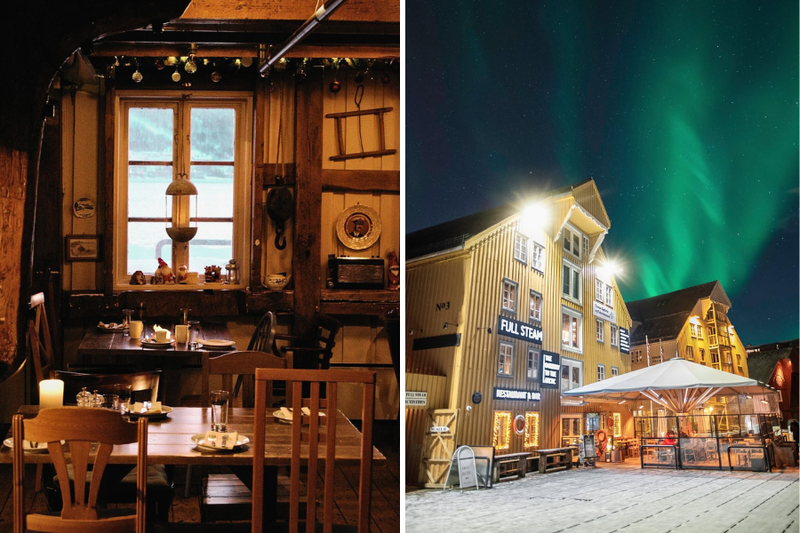 A Full Steam Tromsøben található, egy 1902-ben épült, egykori halgyári épületben. A hely egyszerre működik étteremként és a világ legészakibb tengerparti múzeumaként. A kiállítások és a történetek révén közelebb kerülsz ahhoz, milyen szerepet játszott a halászat Észak-Norvégia életében.