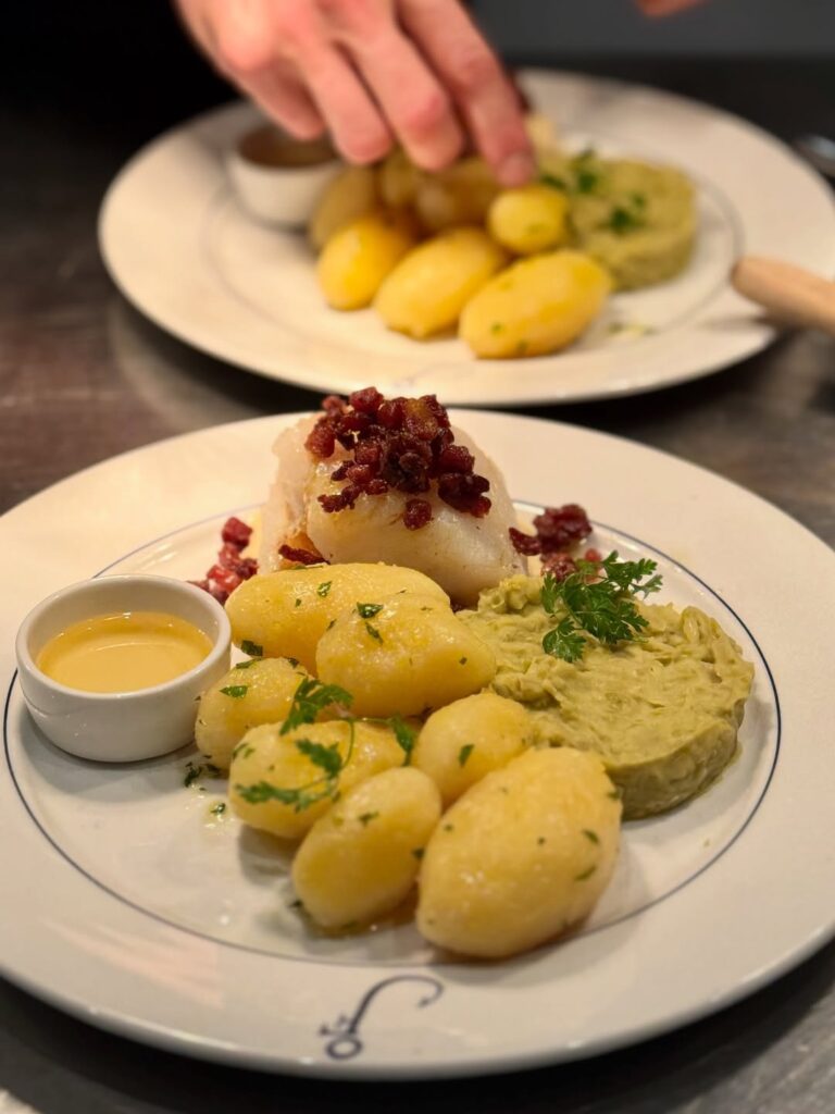 Az étlap a helyi alapanyagokra épít: sütőben sült tőkehal beurre blanc mártással, ropogós ikra, gazdag hallevesek — és időnként olyan különlegességek is felbukkanhatnak, mint például egy bálnaétel. A vendégek külön kiemelik a barátságos, figyelmes szervizt és azt, hogy itt tényleg „érezni lehet a hely szívét”. Ha Lofotenben túrázol, ez a tökéletes jutalom-vacsora egy hosszú nap végén. Különösen, ha utána még kinézel a mólóra, hátha feltűnik az égen a sarki fény.